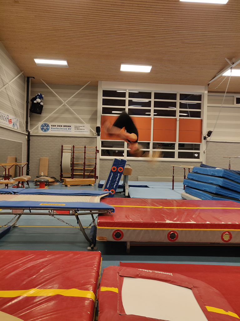 De springgroep-lessen zijn in de Turnhal in Kampen. Deze beschikt over 2 blokkenbakken en veel mooie toestellen. Genoeg uitdaging, maar ook de kans om rustig nieuwe sprongen te oefenen.